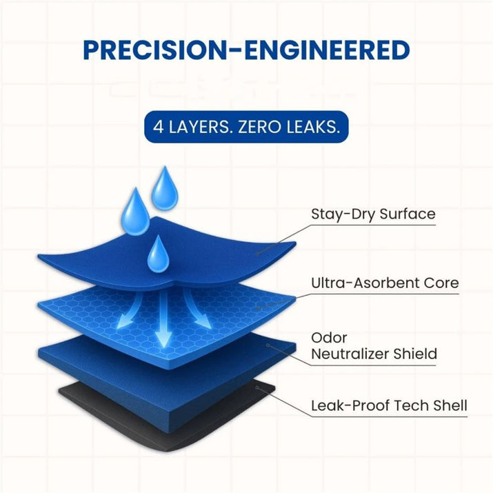 - Leak-Proof Barrier prevents breakthrough while staying breathable